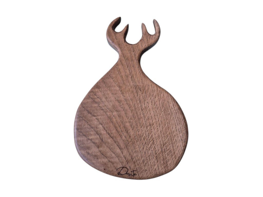Krájacia doska s rukoväťou v tvare parohov vyrobená z masívneho dubového dreva