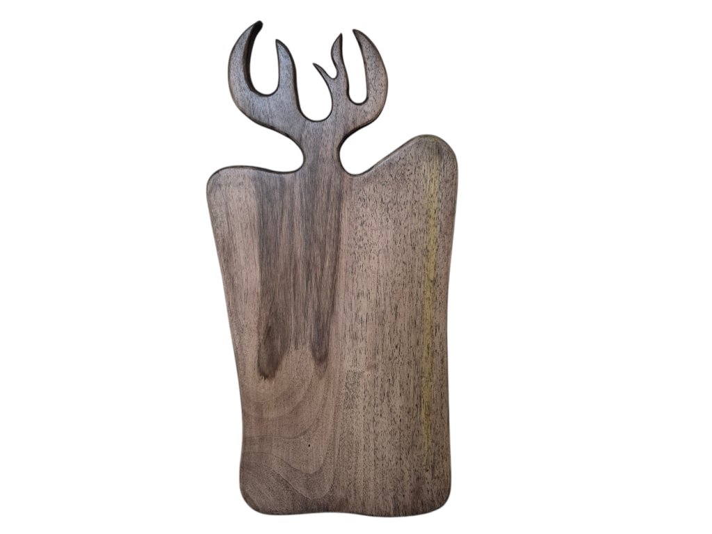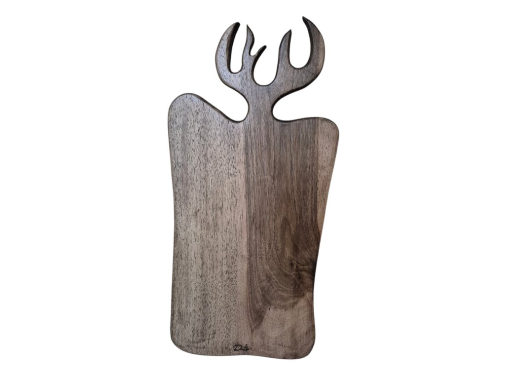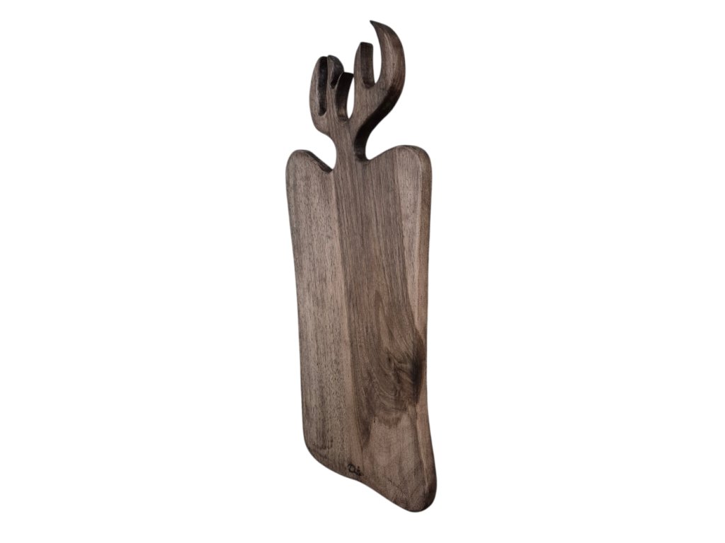 Servírovacia doska s rukoväťou v tvare parohov, vyrobená z masívneho orechového dreva