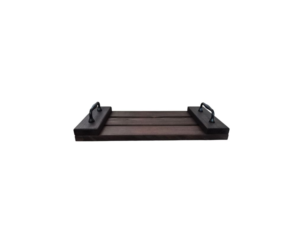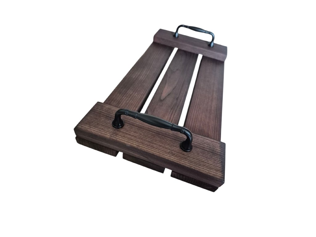 Drevený podnos z masívneho dreva v hnedej farbe.